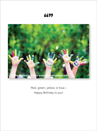 Red, green, yellow, or blue - Happy Birthday to you! inside Happy Birthday!