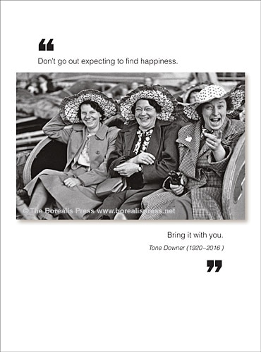 Don't go out expecting to find happiness.Bring it with you.Tone Downer (1920-2016)